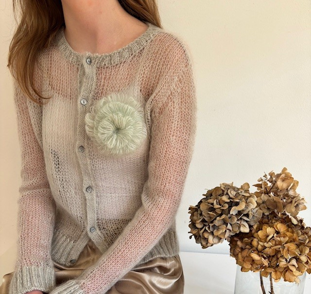 SYLVIE KIDSILK FLOWER BROOCH PATTERN IS SUITABLE TO ANY LACEWEIGHT KID MOHAIR YARN.